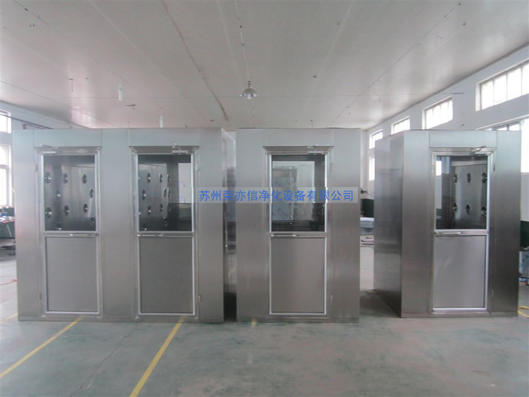 不銹鋼風淋室: 不銹鋼風淋室 它是人員或貨物進入潔凈區由風機通過風淋噴嘴噴出經過高效過濾的潔凈強風吹除人或物體表面吸附塵埃的一種通用性很強的局部凈化設備。